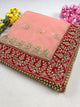 Bridal Kyara Peach Embroidered Fringed Net Dupatta
