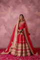 - Lehenga: Sinduri Red Maharani bridal lehenga in raw silk with gold gotta patti, intricate embroidery, and a heavy hemline.